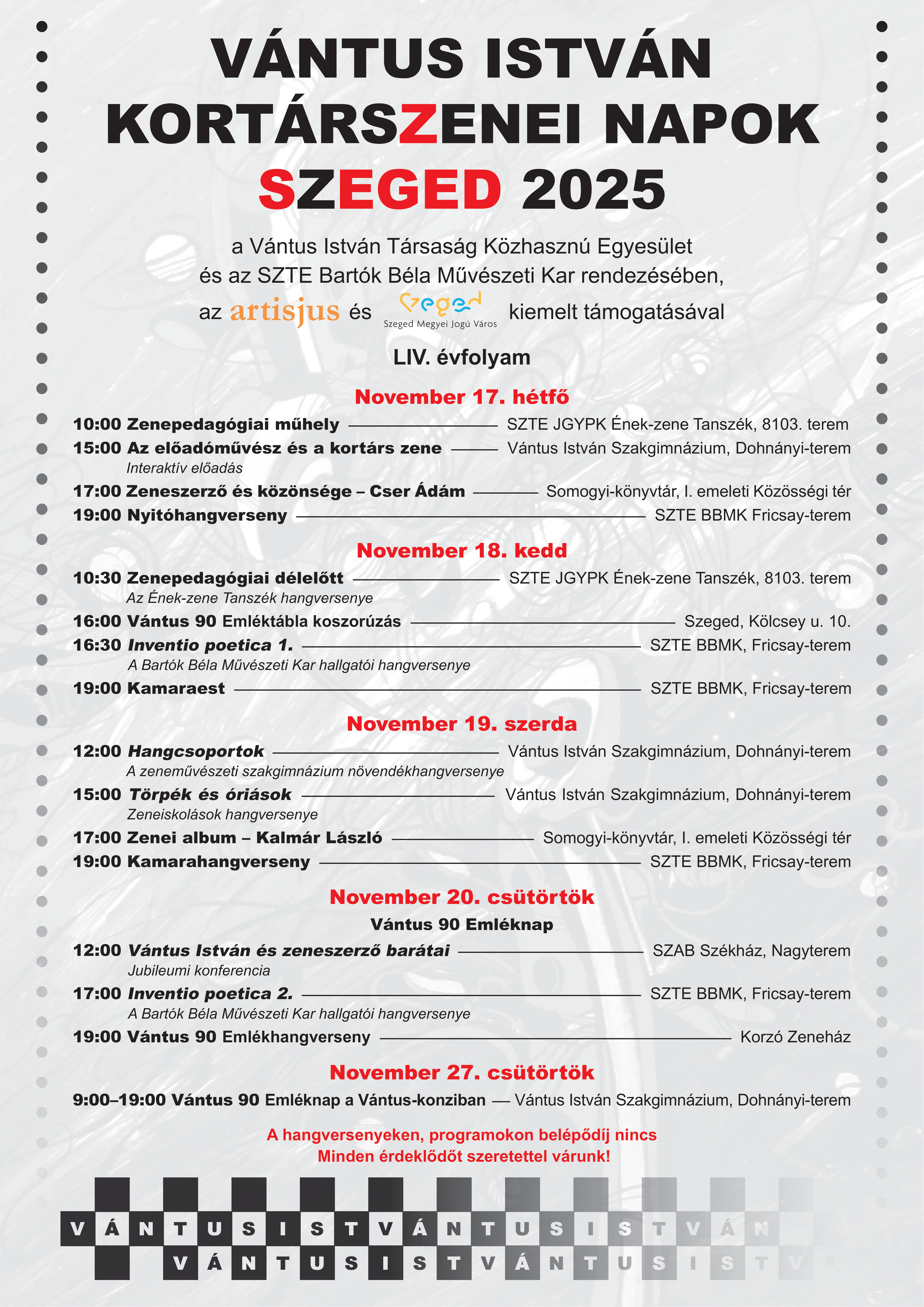 A Vántus István Kortárszenei Napok 2025 plakátja innen letölthető: Vantus_nagyplakat_2025